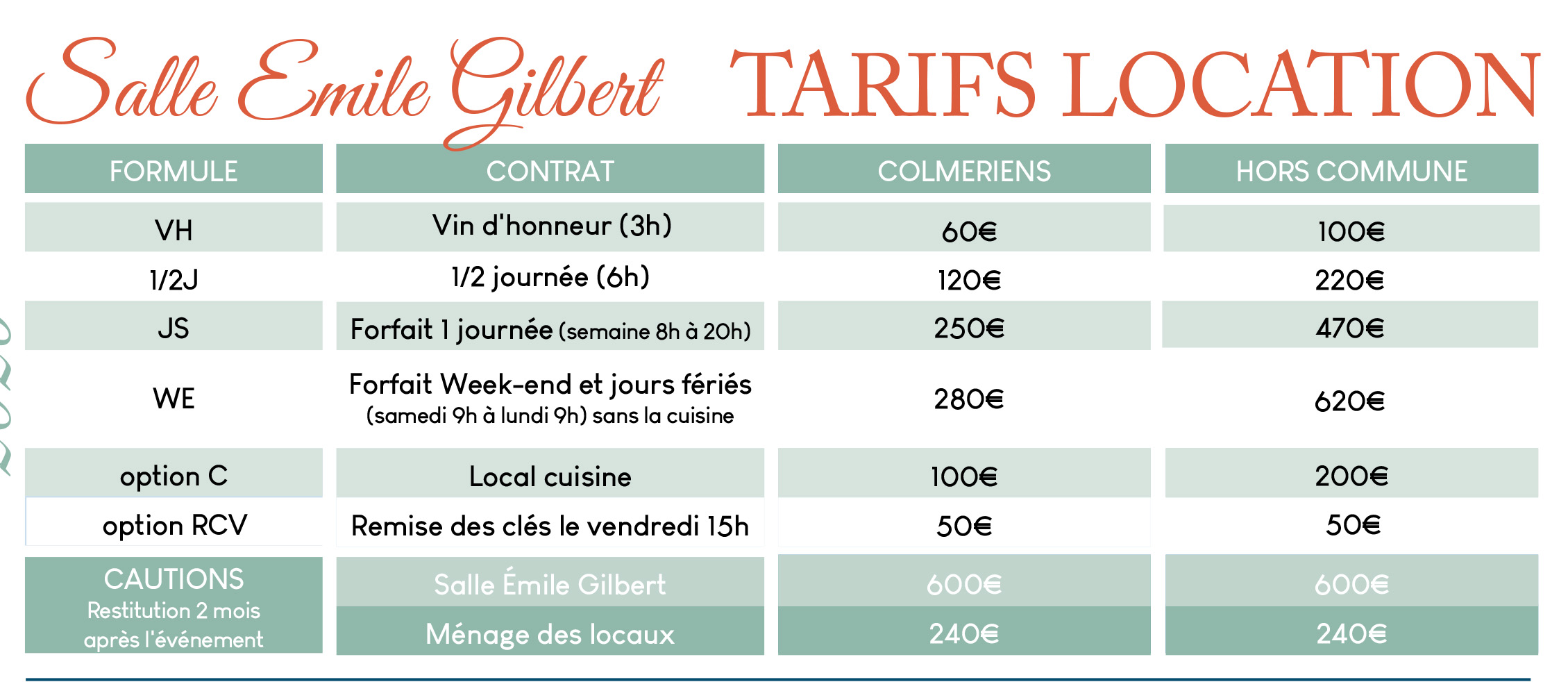 Pour la réservation, s’adresser en Mairie.
